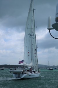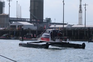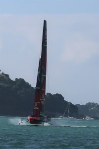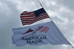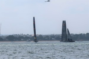 We went out to watch day 2. Docked off about 2 pm for a start a bit after 3. Course C again which is the closest course to the city. The wind had shifted nearly 180 degrees from the previous day. The conditions were as challenging as the day before, shifty and puffy. The way the round robin works, AM sailed against Luna Rossa both races and NZ sailed against Ineos both of their races. AM had a mechanical issue on the first tack of the first race and struggled to regain the lead giving them their first loss. Their second match up went to plan, taking the win. Ineos had a much better day than the previous. They got around the course with no issues however NZ took both races. We will be out to watch Day 3.