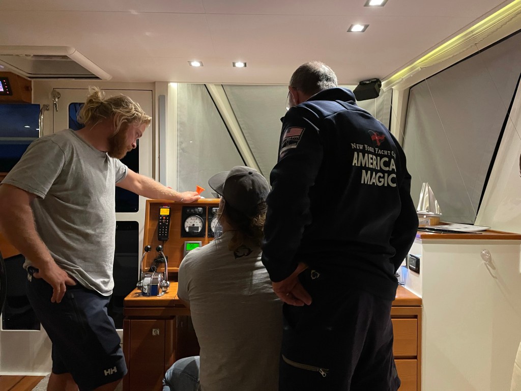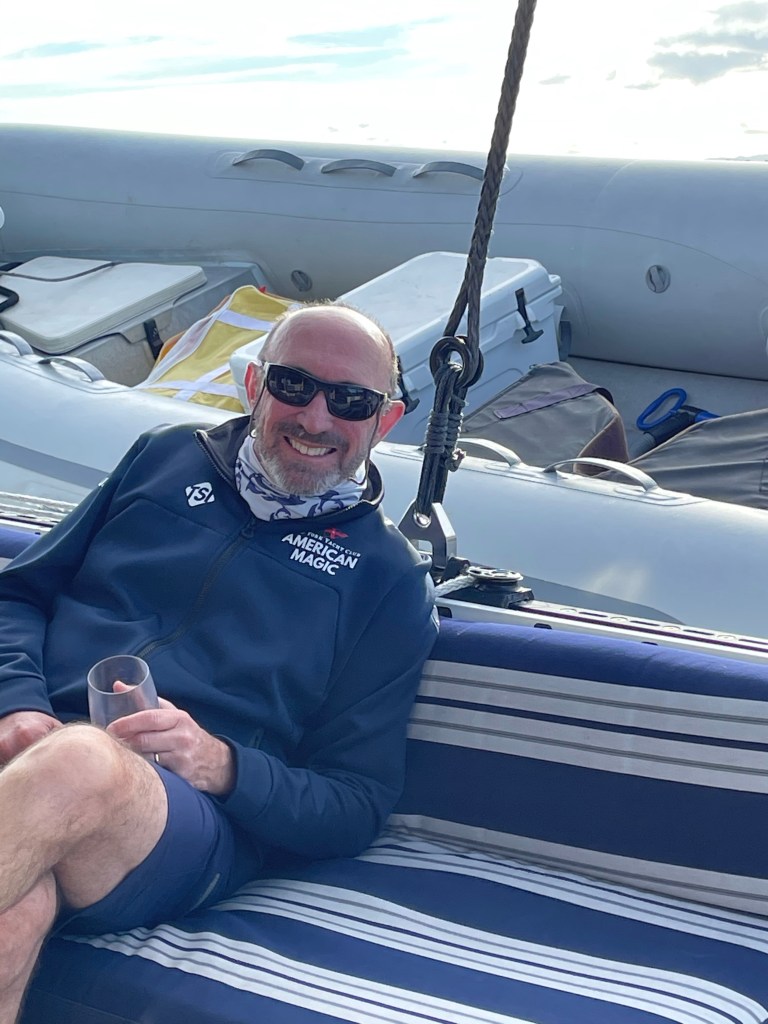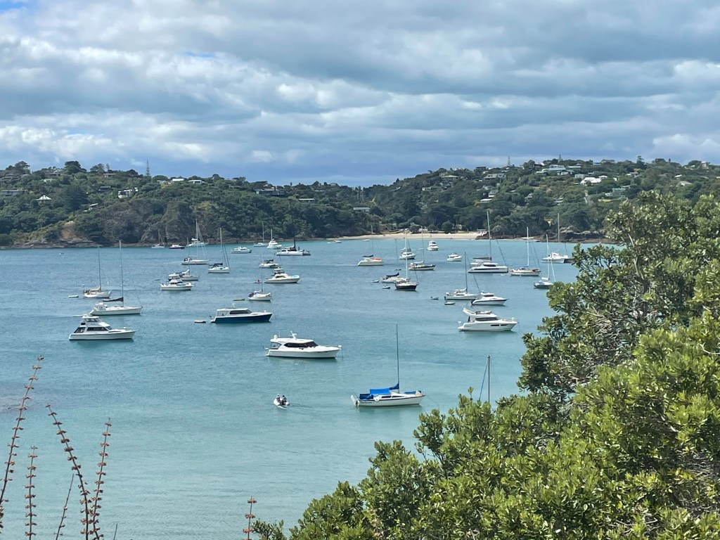 After a lunch of pizza in the village of Oneroa we sailed back to the race course off North Head in Auckland. Hour and 15 minute beat with Solent and full main. About 8 nm. We enjoyed watching a very close race between Ineos and Luna Rossa. Nine lead changes!