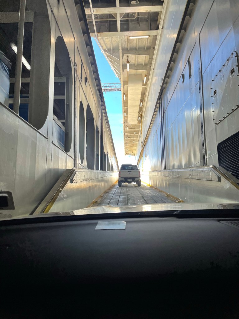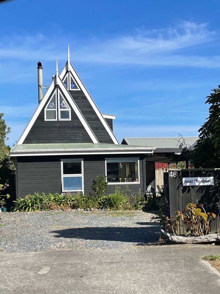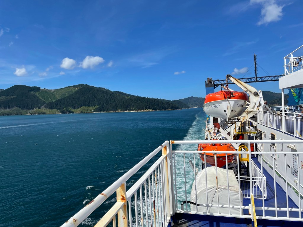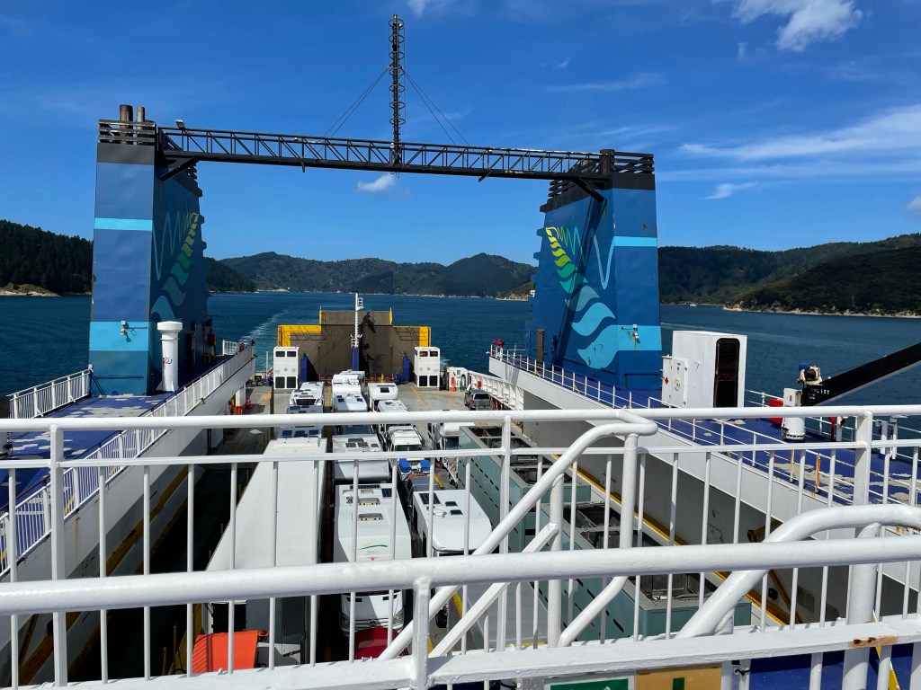 After getting our car debrief we loaded up and headed out of town for the first time by car. Our destination was Waikanae on the West Coast a close distance to Wellington. It was an over 7 hour drive through all types of landscape. There were very few motorways on our whole journey. We ended up staying in a lovely beach community at a private studio attached to a couple’s home. We had a nice beach walk to stretch our legs after the long drive. We went into the town and had dinner. That evening we plugged our car into the socket at our hosts’ home by running an extension cord out their kitchen window. They had a small electric BMW so were helpful with instructions. The charge only gives you about 40km but better than none. We discovered later on that the car will generate some charge going down long stretches of hills. Not enough to give you much mileage but interesting. We headed out in the morning to catch our ferry in Wellington to Picton in the South Island.