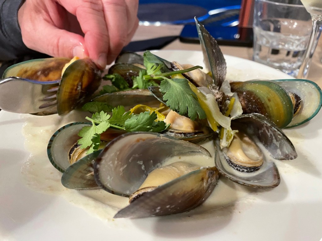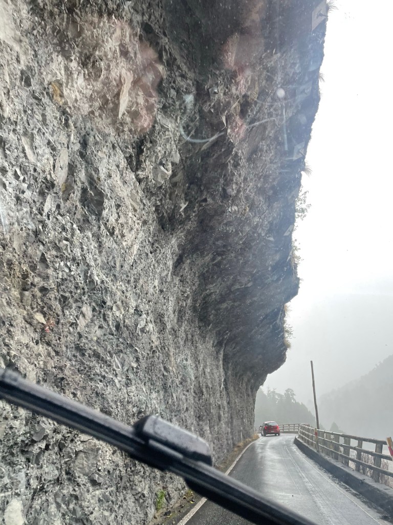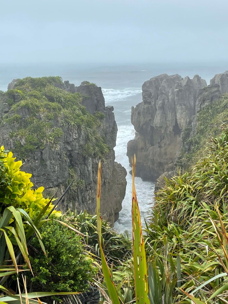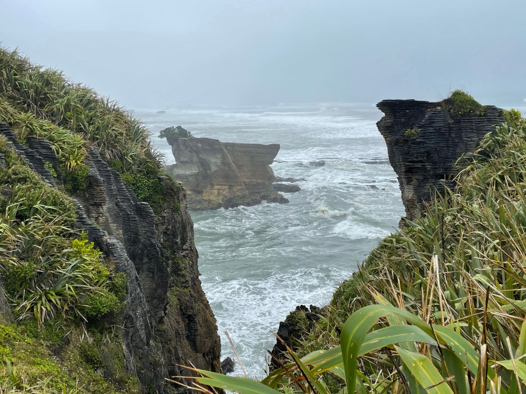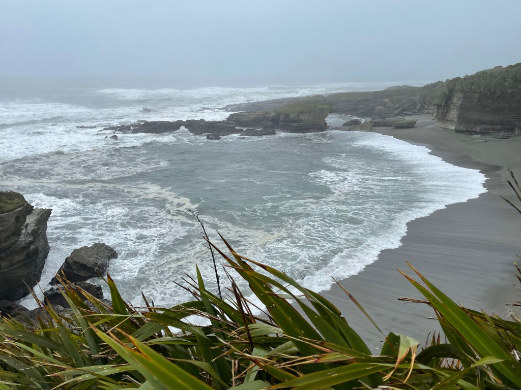 We arrived in Picton about 4:30pm and then drove to Port Nelson about a 2 hour drive to stay for the night. We were skeptical when we saw the area, very industrial on the edge of a large port but it ended up being a quiet place on a little marina. We had delicious green lipped mussels with our dinner at a restaurant next door. I chose this location instead of closer to the city of Nelson because I wanted to check out Boulder Bank, a unique internationally significant natural feature the next morning. Over 13km long, the bank is formed of large granodiorite boulders from Mackay Bluff, moved southwest during northerly storms to form a precise line many years ago. It looked like a manmade seawall, quite remarkable. After that we headed to Punakaiki for some more nature and short walks. The weather as we headed southwest got progressively more rainy and windy. Apparently very typical for that area. We saw some magnificent landscape. We walked the Truman Track which winds through a mature forest to a coastal strip of flax and down to a small sandy cove. Dramatic views of sea caves and the rocky shore despite the rain. We then explored Pancake Rocks which are spectacular unusual rock formations. The windy, rainy weather added to the attraction. We had dinner at a local pub and stayed in a cute cottage overlooking the Tasman Sea.