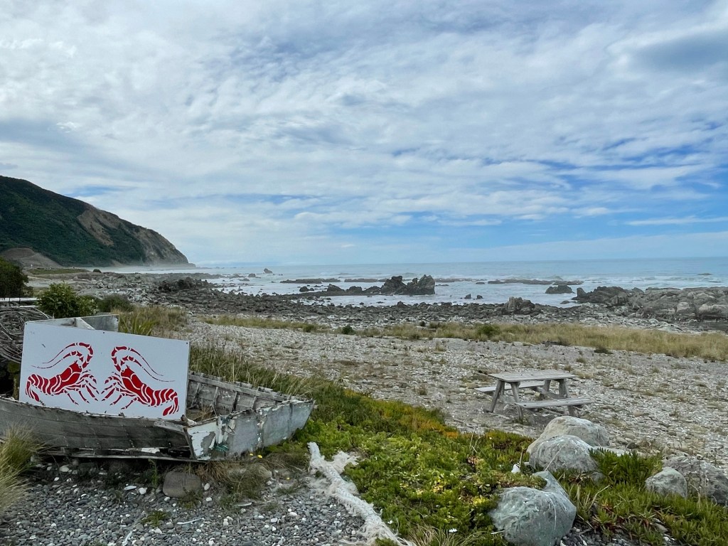 Tuesday March 2nd – Thursday March 4. The NZ government was going to announce new COVID Tier Levels to take effect Sunday morning at 6am. We decided to stick to our original schedule, departing the South Island on Thursday. We would then stay on the North Island away from Auckland until the level changed. Tuesday morning we left Queenstown and drove to Christchurch for a night. We walked around that evening and had dinner on New Regent Street which survived the earthquake 10 years ago. The earthquake damage is still visible in much of the city. Wednesday morning we headed to Picton for our ferry on Thursday morning. We stopped at Nin’s Bin a little locally run food stand on the ocean just north of Kaikoura who specialize in local crayfish. Unfortunately they had reached the local harvesting quota so the Crayfish was flown in daily from Fiordland. It was still very good. We also had some green lipped mussels that were good but not as tender as the ones we had in Nelson. Again we drove through a lot of road works. There had been several major rock slips on to the road after a 2017 earthquake that were still under repair. Rock slips are a common occurrence in NZ. We arrived in Picton late afternoon and checked in to the Harbour View Motel. The next morning we loaded onto the Interislander Ferry back to Wellington.